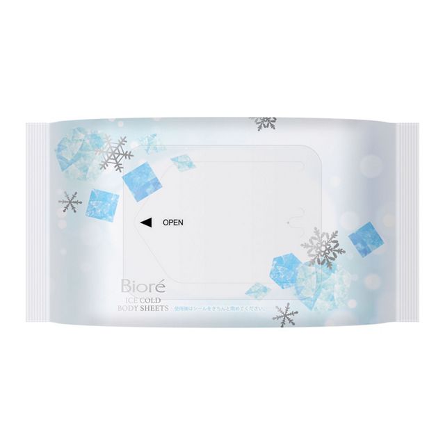 A full‑body cooling wipe in a single sheet! The moment you wipe, the skin temperature drops by 3 °C*, thanks to sweat-absorbing cooling water thoroughly soaked into a thick, durable sheet. Infused with menthol, it leaves skin feeling refreshed and revitalized. The large-size sheet effectively wipes away sticky sweat and odor-causing oils. Contains hyaluronic acid for extra skin care. Three fragrance options available: Unscented, Refresh Floral, or Peach Soap.