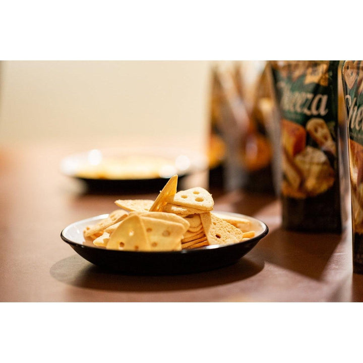 Cheeza Camembert crackers contain real camembert cheese blended with cheddar in a balanced manner.