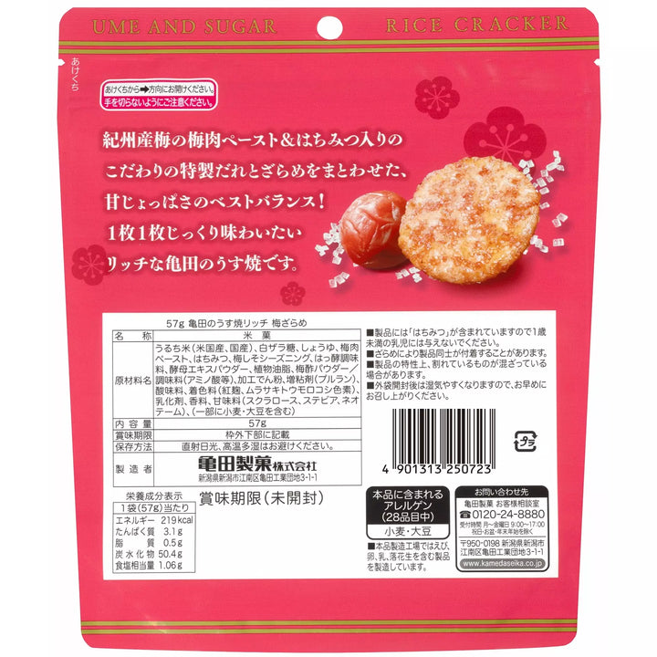 Kameda uses a proprietary double-flavoring process to coat the rice crackers evenly, enhancing both taste and aroma. The ume extract gives the crackers their characteristic tang, while the honey glaze offers a mellow finish. This flavor combination reflects a traditional Japanese appreciation for contrasting tastes—especially the balance of sour and sweet found in seasonal snacks across Japan.