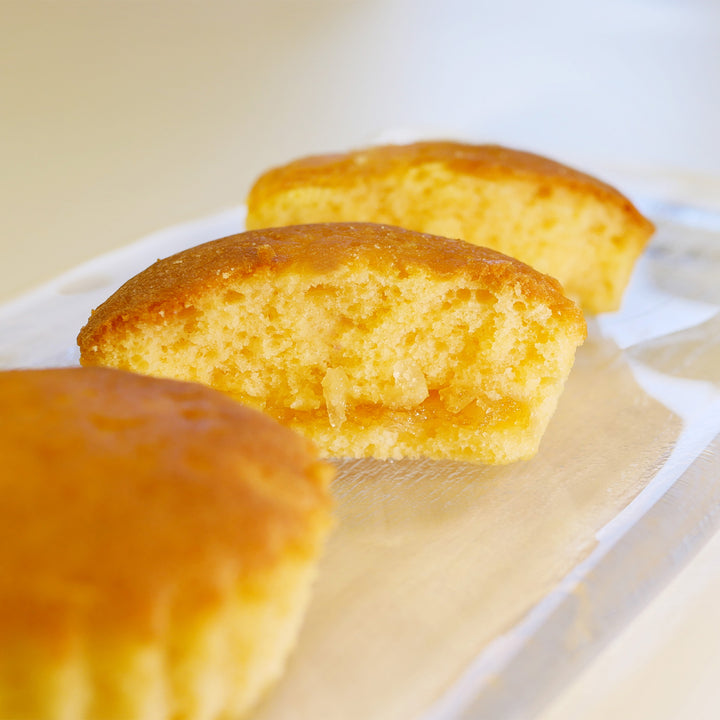Experience a madeleine that is juicy, rich, and bursting with citrusy delight. We’ve baked our signature buttery cake around a vibrant center of refreshing lemon paste, creating a treat that is both comforting and invigorating.