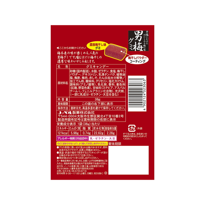 The Otoko Ume series is Nobel's flagship product line, this is a great candy for those who love umeboshi plums and sweet and salty food. Departing from the standard Otoko Ume that you know and love, which is an umeboshi-shaped ball, this version features firm gummy candies that are both soft and chewy!